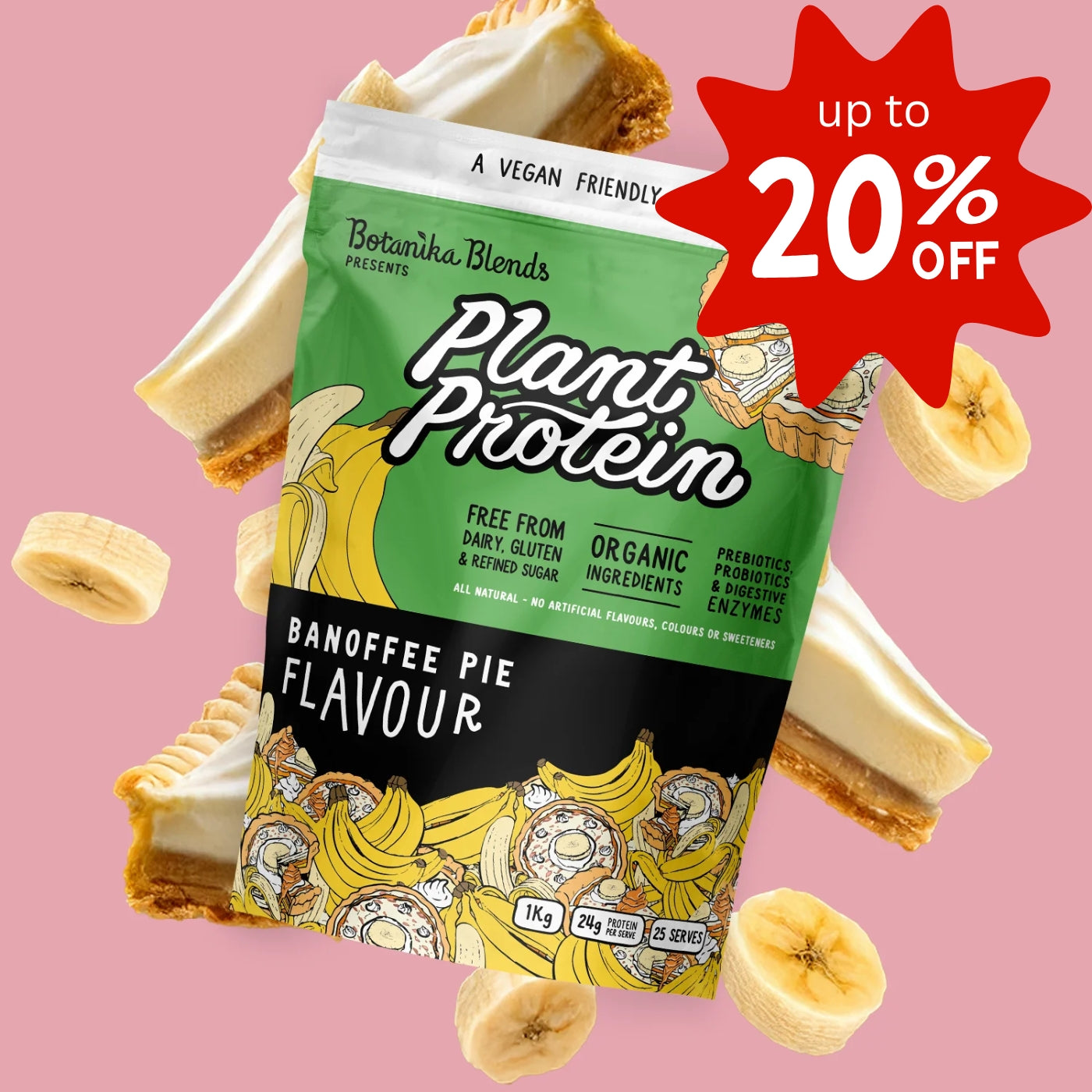 A nourishing twist on a classic dessert. This banoffee pie layers a golden, protein-rich base with smooth date caramel, whipped coconut cream, fresh banana, and a sprinkle of dark chocolate....