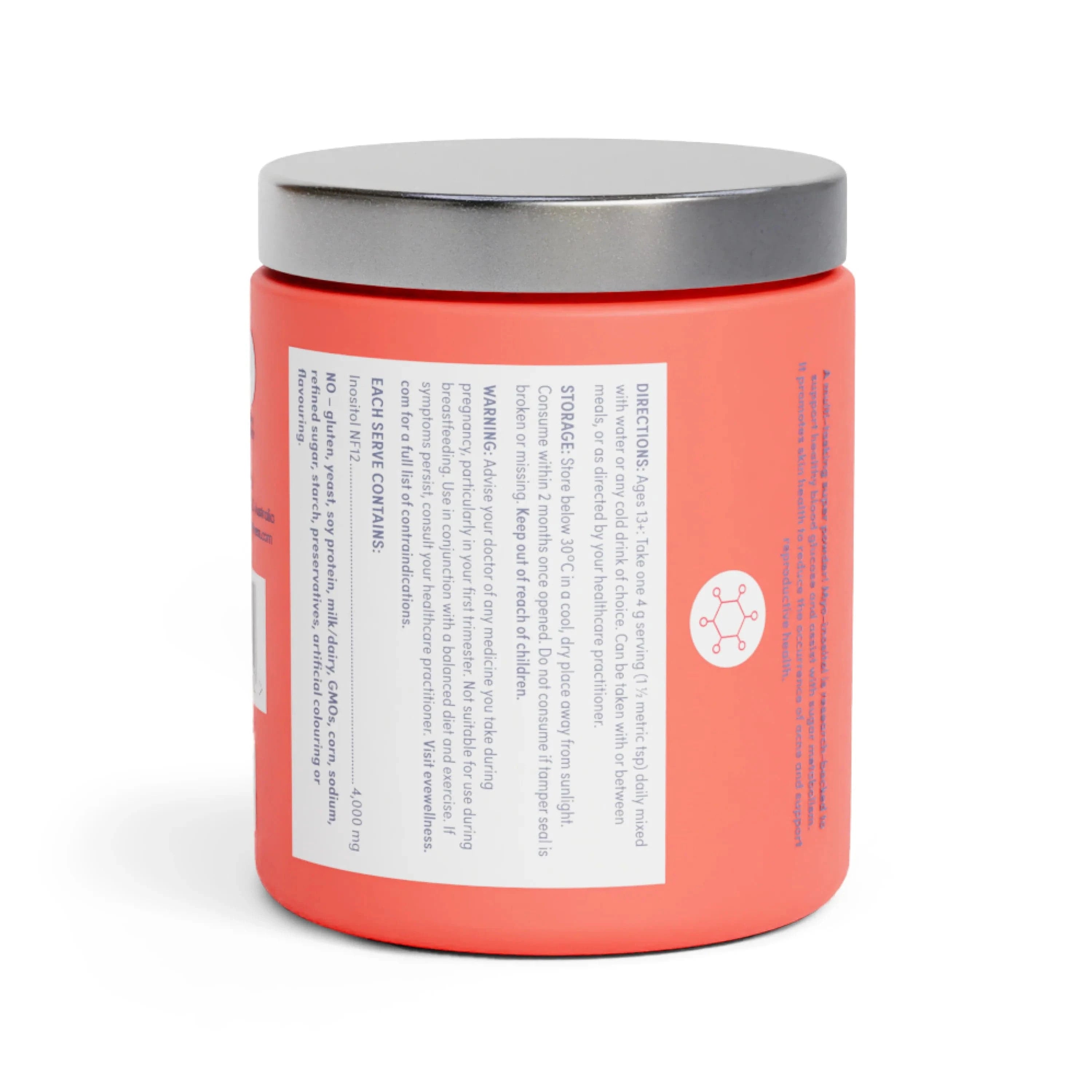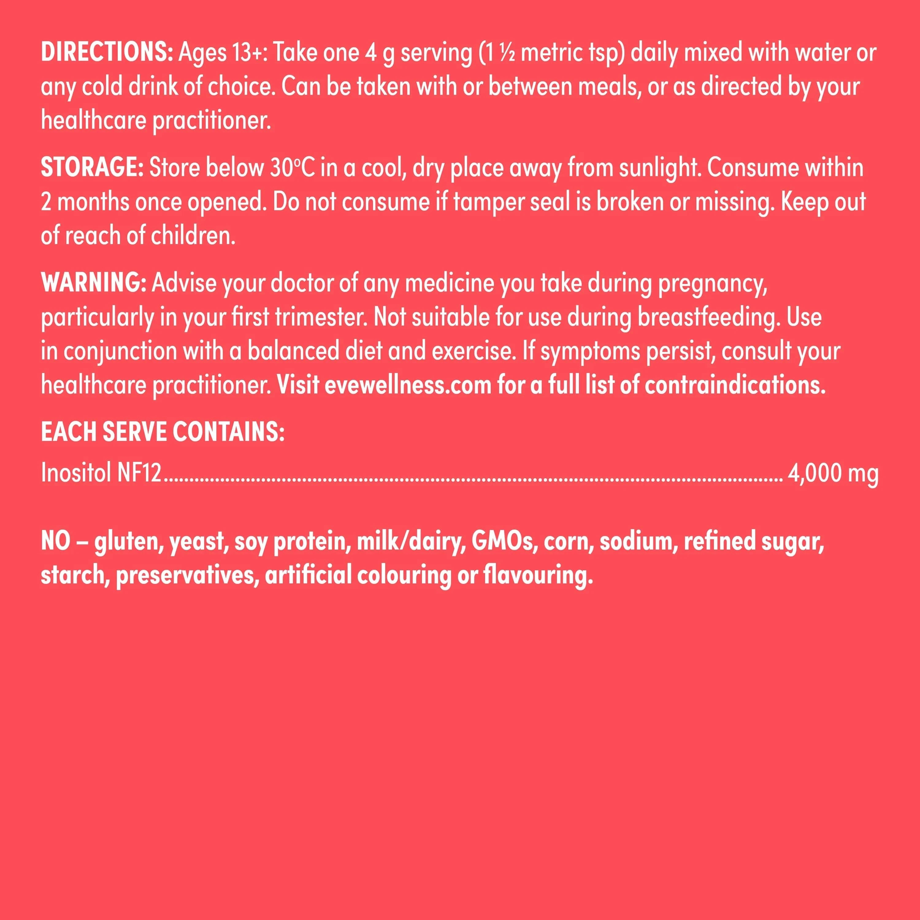 84 g Oral Powder. Each 4 g dose contains Inositol 4000 mg. Contains 21 serves.