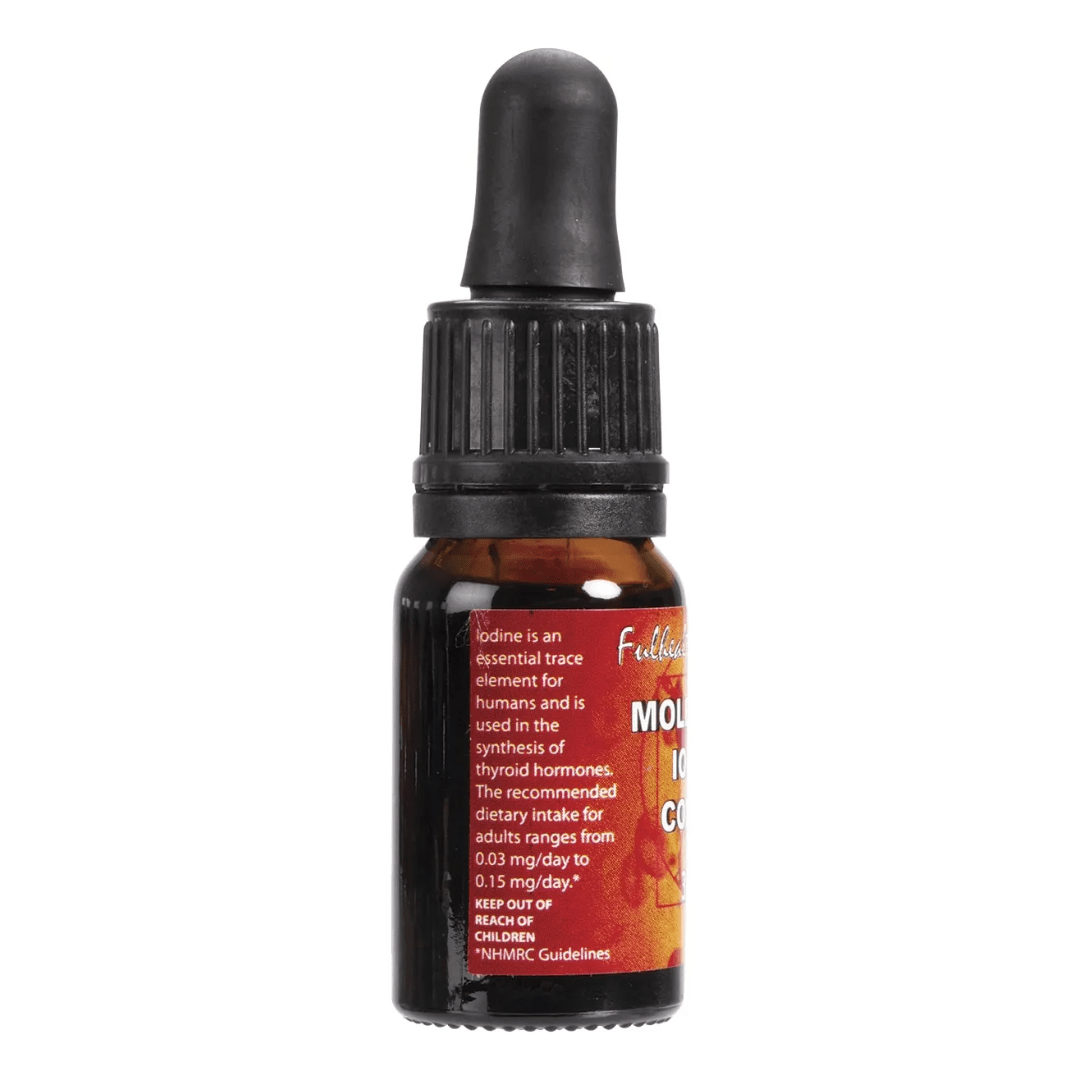 Fulhealth Molecular Iodine Colloid, a concentrated solution containing 3% w/w iodine. This 10ml bottle is designed to provide a reliable source of iodine, an essential trace mineral that plays a crucial role in thyroid function and overall well-being.