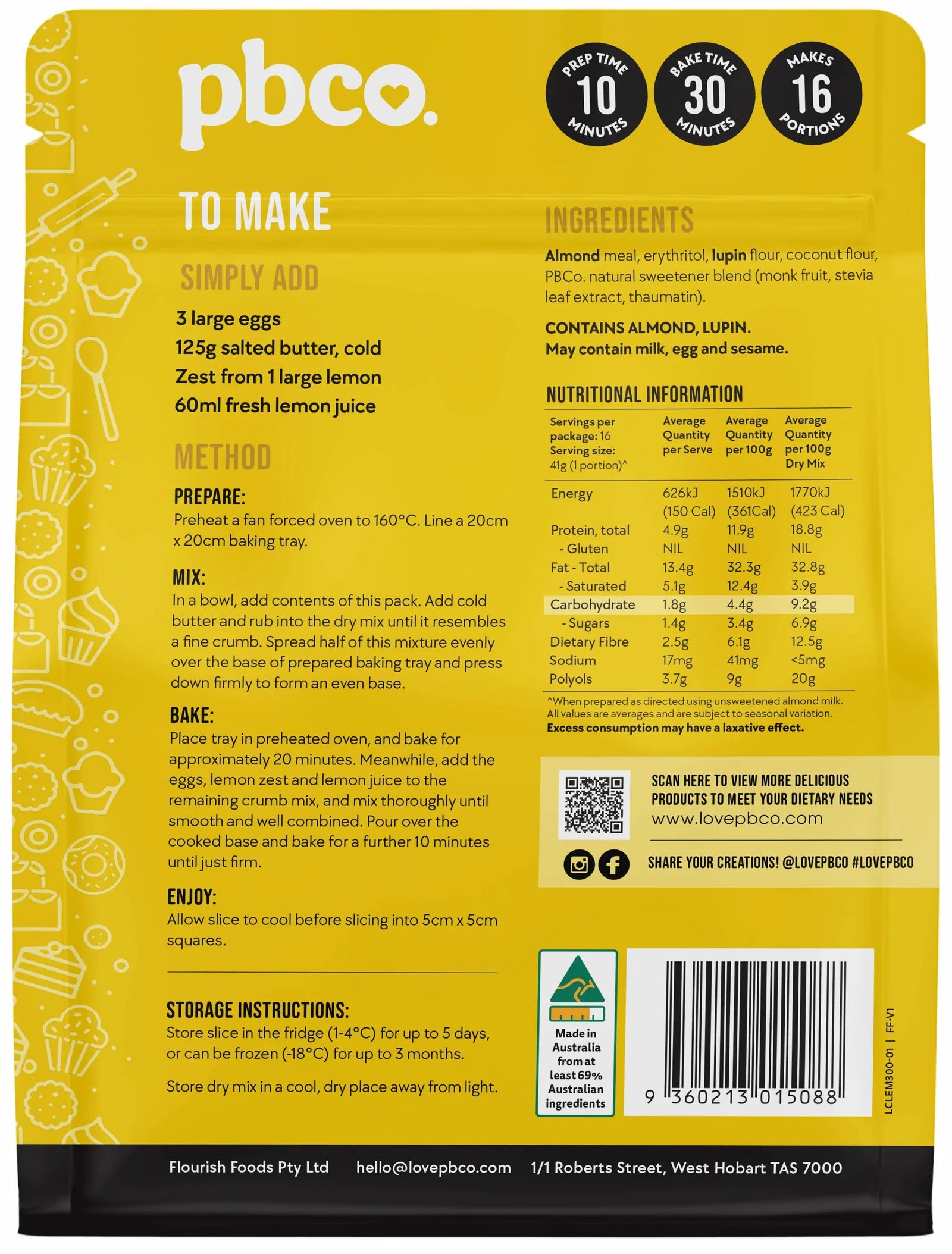 Each packet makes 16 delicious portions, so you can enjoy the perfect balance of tangy lemon flavour and smooth texture without the carbs. Whether you're after a quick snack or a sweet treat to share, this slice is simple to prepare and fits seamlessly into your healthy eating routine.
