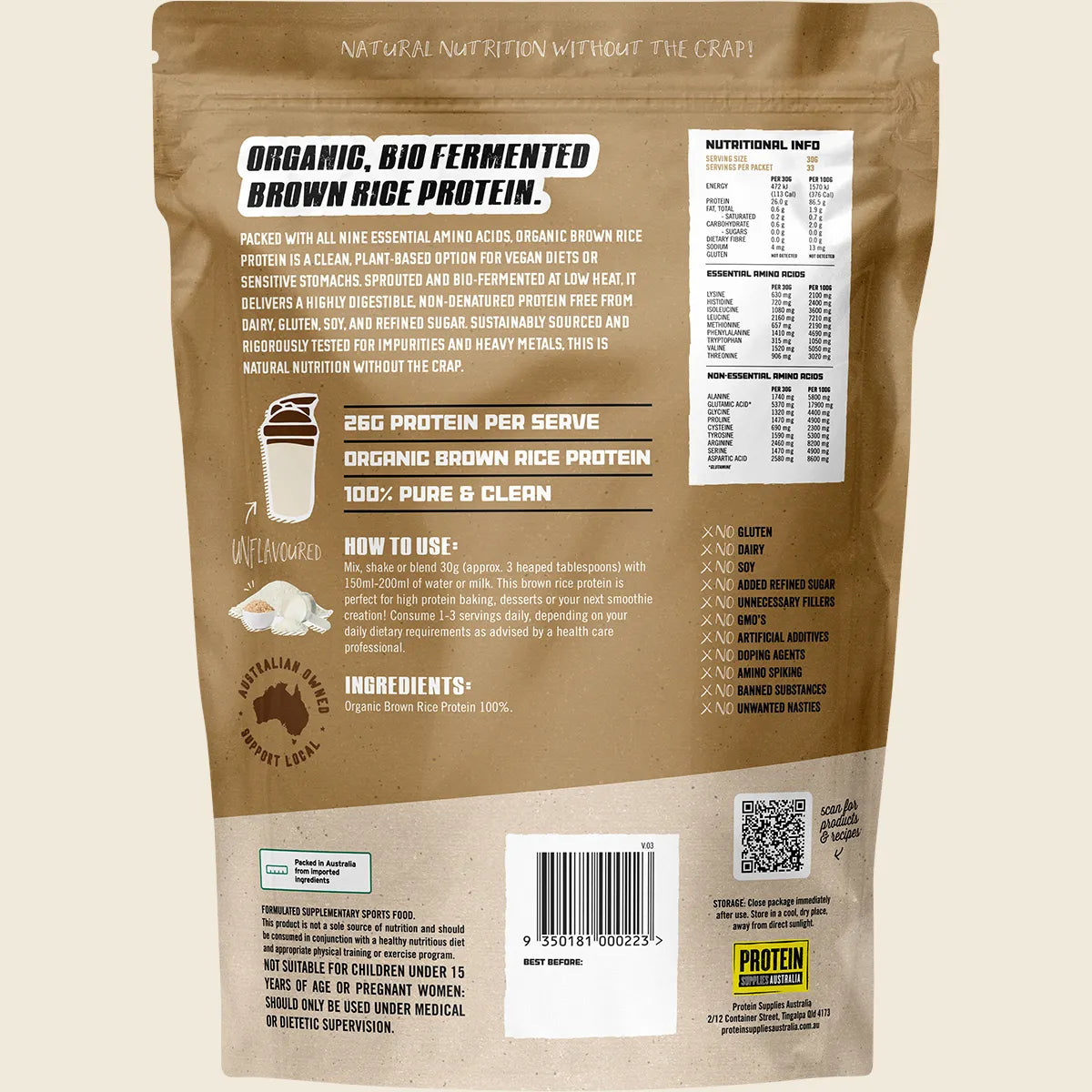 Protein Supplies Aust. Vitamins & Supplements Protein Supplies Aust. Biopro (Sprouted Brown Rice) Pure