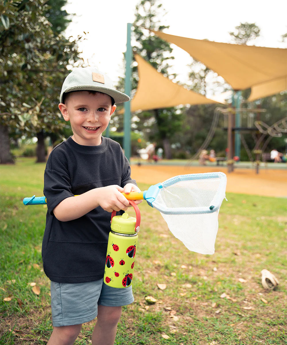 From finding a new species of stink bug to channeling their inner "David Attenborough" our ladybug water bottle is the perfect hydration buddy for your little explorer.