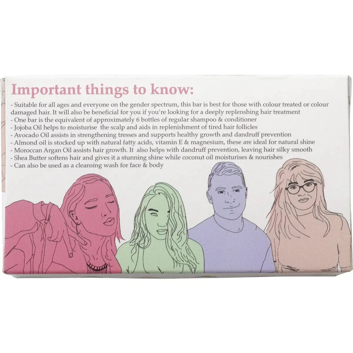 Is your hair screaming for a holiday?? Or have you maybe weakened your locks lying in the sun?? Have you been blasting your tresses with wind from all that motorcycle racing?? Or are you just in need of a little special treatment?? Are your locks maybe not their naturally inclined colour anymore?? Have you invested some $$ in a hella cute haircolour?? Has your hair been damaged from dying and bleaching? Then this is the bar for you. Save 6 shampoo and conditioner bottles from polluting the environment by switching to this beautiful solid shampoo bar. Not only are you going to be an eco-friendly warrior, your hair will be at its absolute best. We've added only fully eco-sustainable ingredients and additives, Kakadu Plum, Jojoba, Avocado, Almond, Argan and Shea Butter to give your hair the rejuvenation it's been waiting for, while holding in your hair colour. This bar is best suited to someone who has had or has coloured hair, has brittle or colour-damaged hair, or who wants a replenishing scalp treatment.