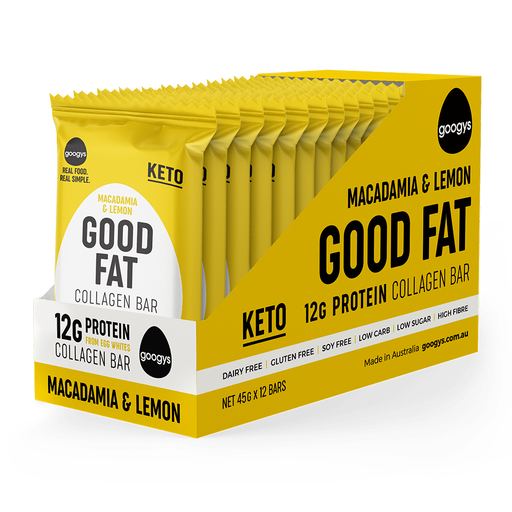 Googys Good Fat Collagen Bar Macadamia & Lemon 45g x 12