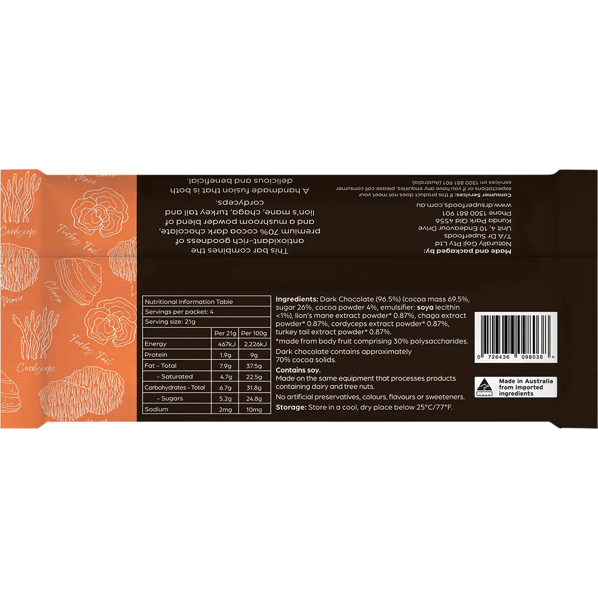 Dr Superfoods Dark Chocolate Bar Peak Performance 85g