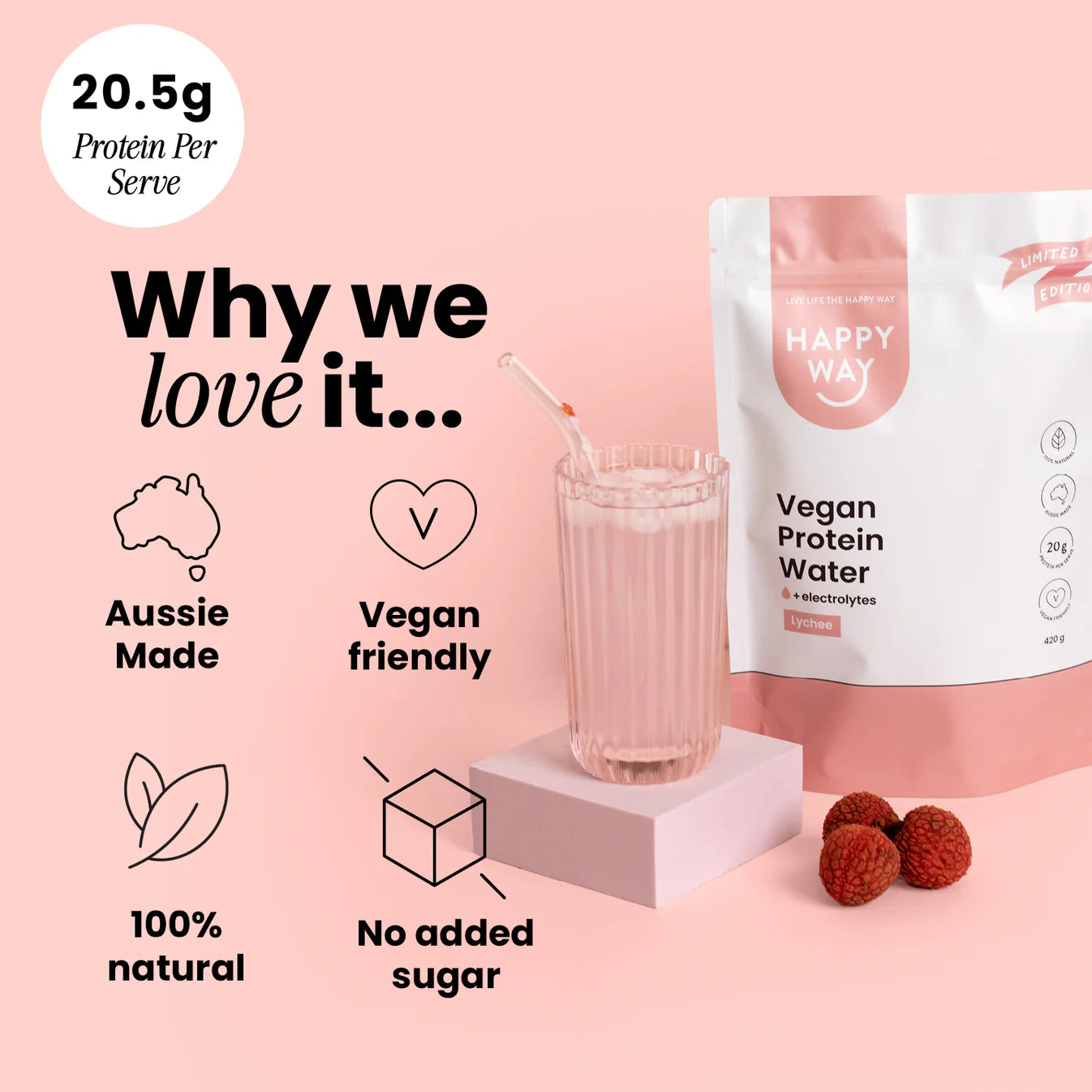 Happy Way Vegan Protein Water Lychee 420g