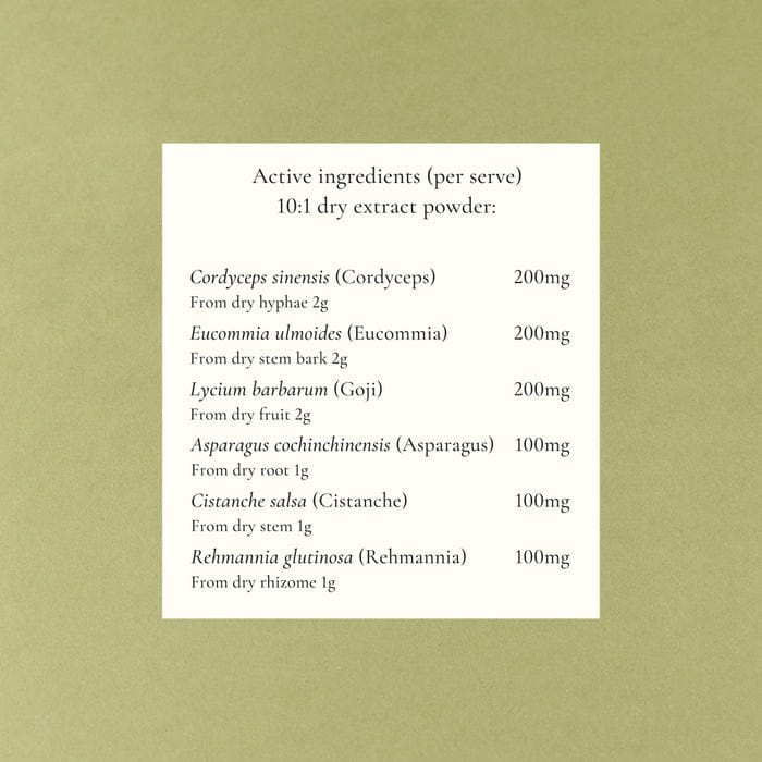 Crafted specifically for our modern fast-paced life, JING helps support kidney health, crucial for managing stress, reducing fatigue, and enhancing physical and mental health.