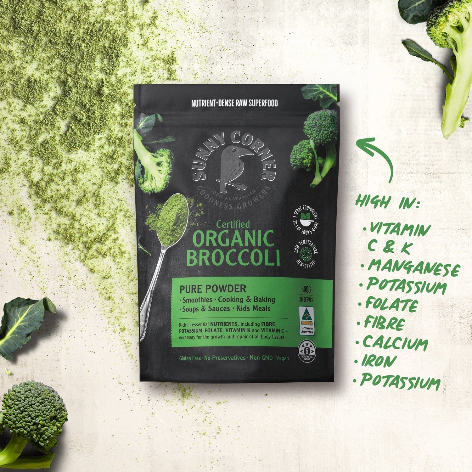 Our Organic Broccoli Pure Powder is made from 100% pure, certified organic broccoli. It's cultivated without the use of synthetic pesticides or GMOs, ensuring that you get the cleanest and most nutritious form of this cruciferous vegetable.