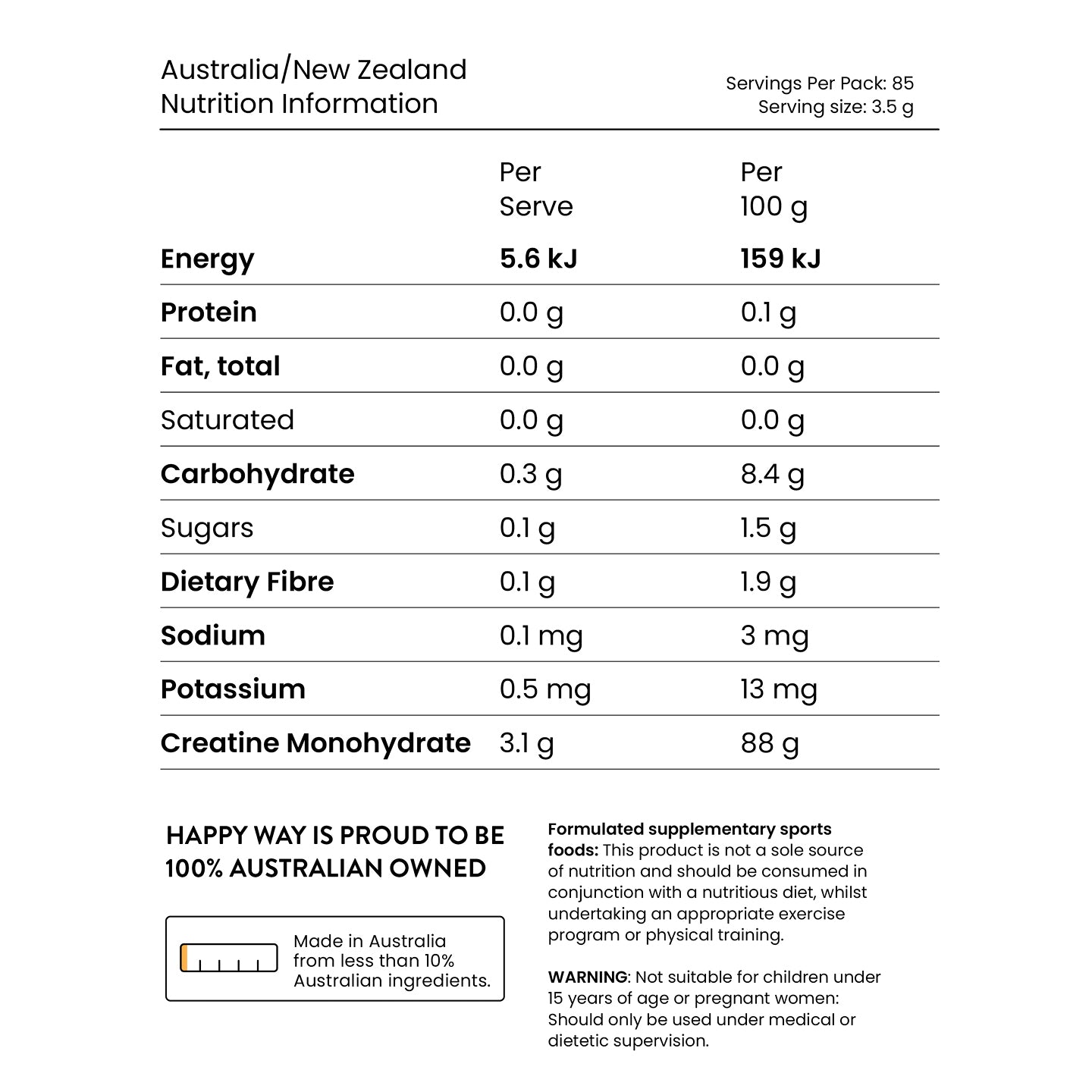 Creatine Monohydrate (88%), Natural Flavour, Citric Acid, Sweetener (Steviol Glycoside & Thaumatin), Beta Carotene.