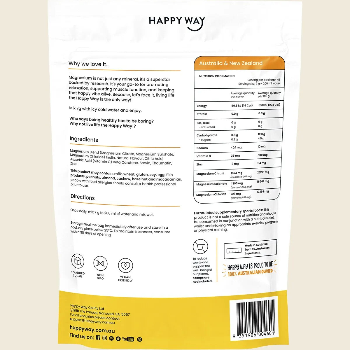 (BBD - 15/04/2026) Happy Way Magnesium Powder Tropical 315g