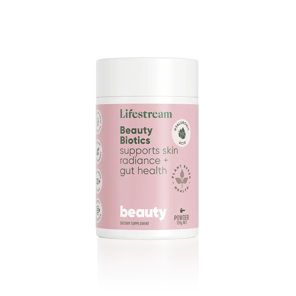 Discover Lifestream's Beauty Biotics, a revolutionary formula that supports the gut-skin connection for a radiant, healthy glow from within. Packed with hyaluronic acid and over 20 Super Red fruits and vegetables, including NZ Blackcurrant, this formula deeply hydrates and delivers essential antioxidants, anthocyanins, and vitamin C to support your skin’s natural defenses against free radicals and support collagen production. Beauty Biotics also includes natural fibre, prebiotics, and probiotics to help maintain a balanced gut microbiome, supporting radiant skin from the inside out.