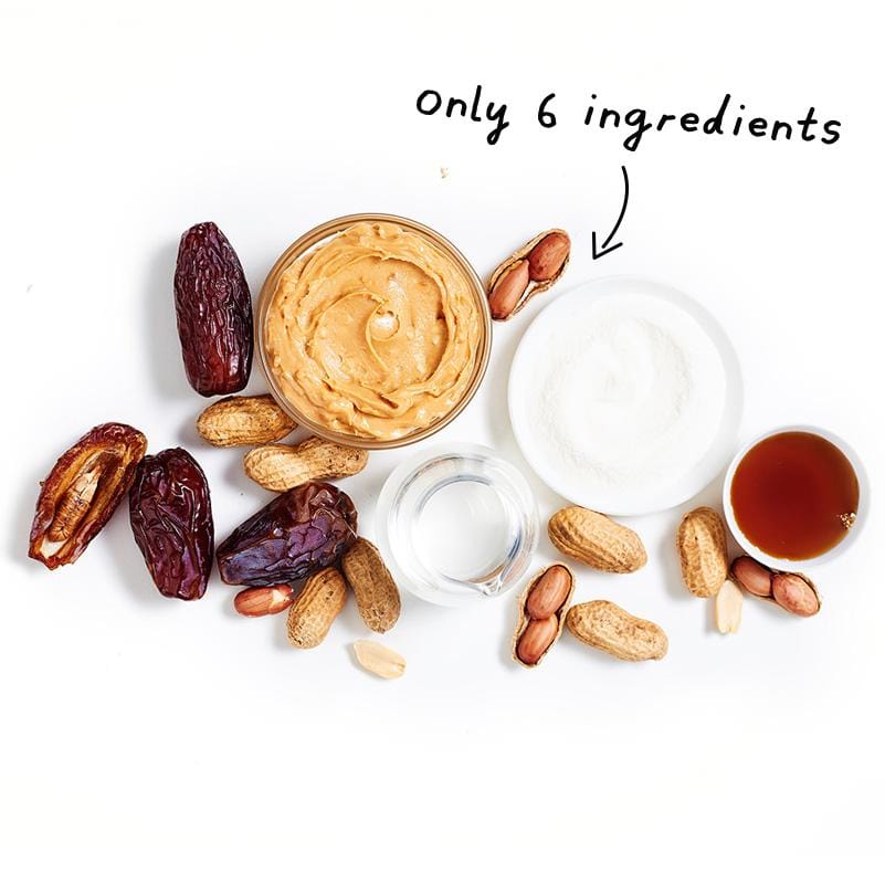 Peanuts (Peanuts, Salt) (27%), Beef Collagen, Maple Syrup, Dehydrated Free Range Egg White, Dates, MCT Oil