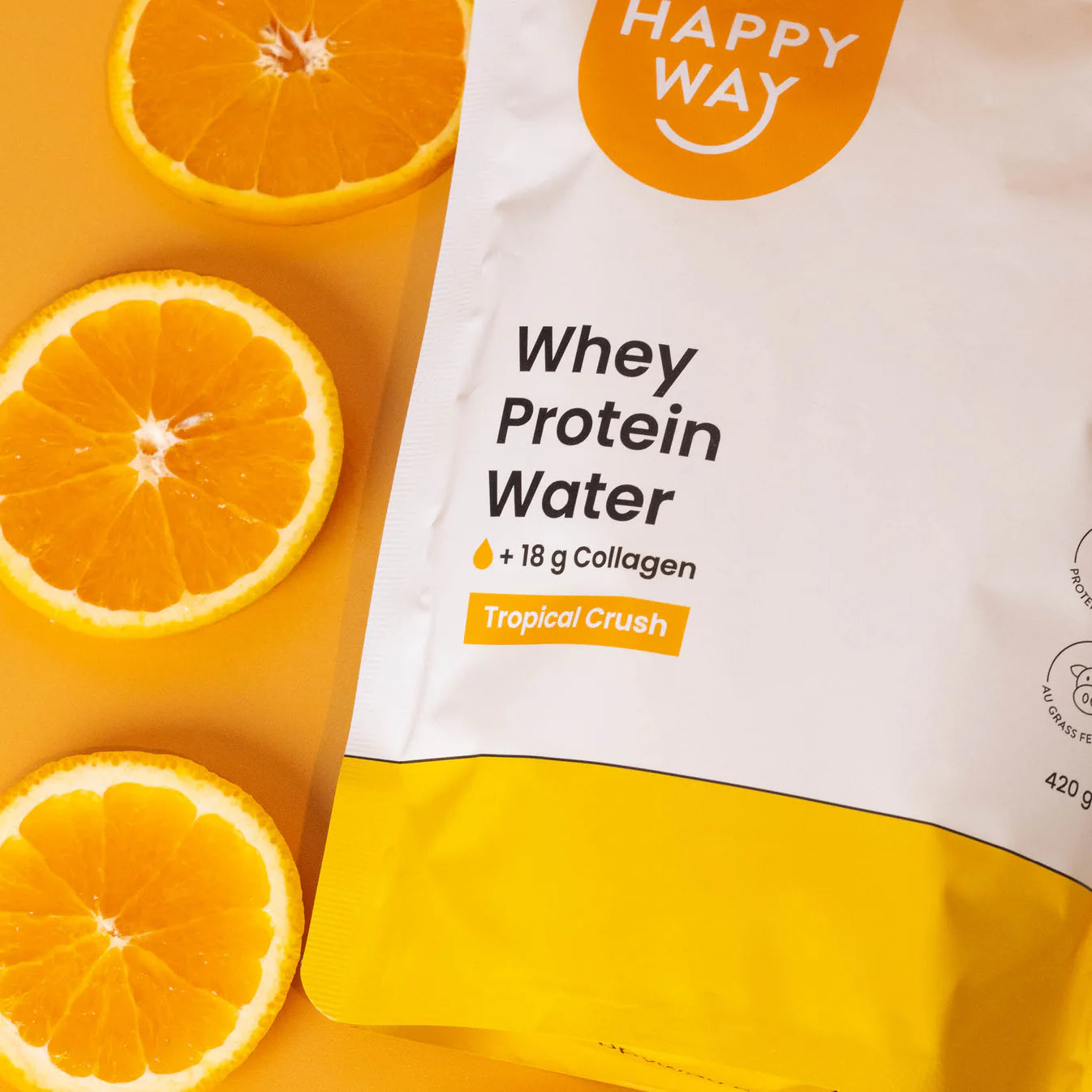 Meet your new way to hydrate! Escape to the tropics with our Tropical Whey Protein Water, packed with the juicy, refreshing flavours of pineapple, creamy coconut, and ripe mango. Each sip delivers a hit of hydration, 20g of protein, and collagen to support healthy skin, hair and nails. Whether you’re smashing a workout or daydreaming about your next vacation, it’s your fruity fix to fuel your day and keep you glowing.