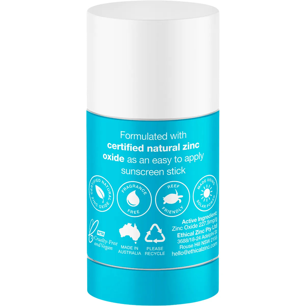 Formulated with certified natural zinc oxide as an easy to apply sunscreen stick.