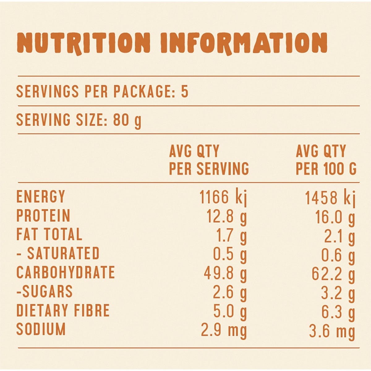 | Serving size: 80 g | ||
