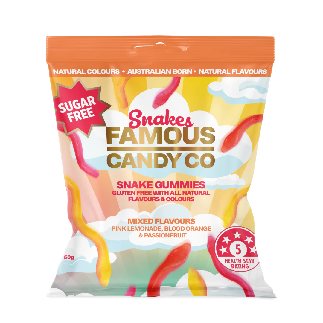 Famous Sugar Free Candy Snake Gummies Mixed Flavours 10 x 50g