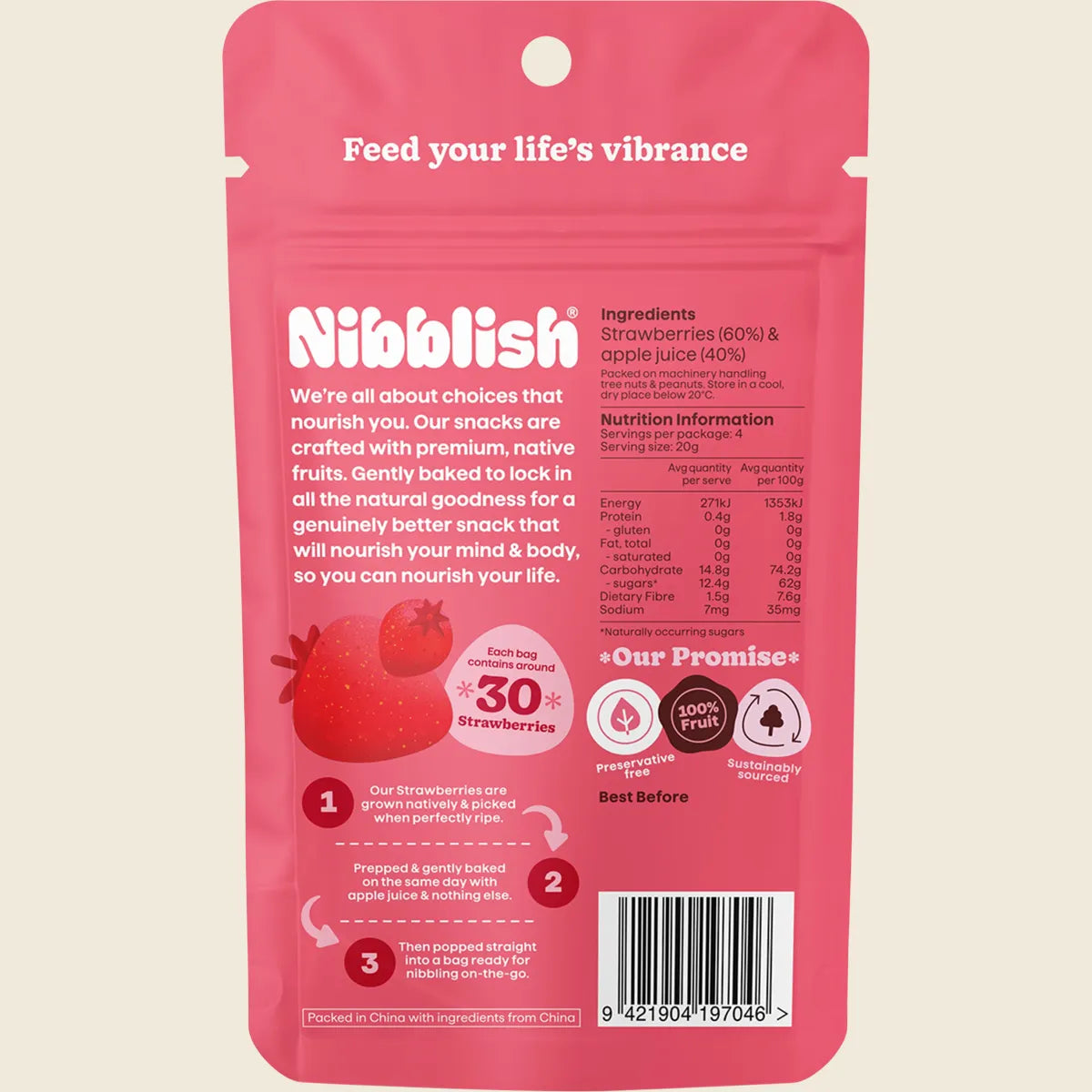 Fresh, in-season strawberries made travel-ready. We add just a splash of pure apple juice to keep them soft, then gently bake them to lock in the goodness. No added sugar, no weird stuff. Just straight-up, sweet satisfaction.